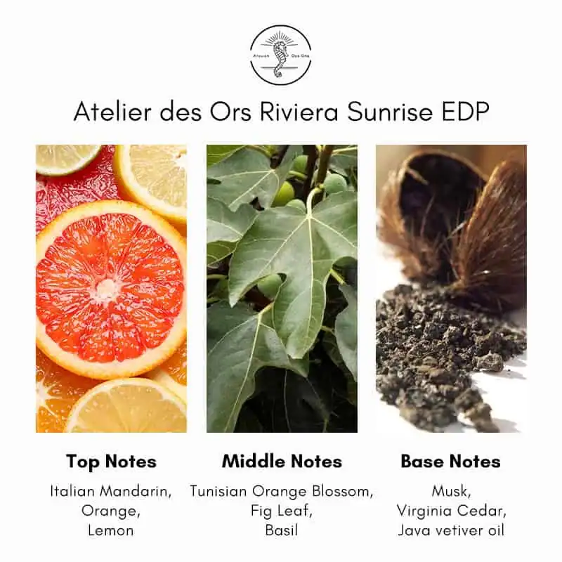 Atelier Des Ors’ Riviera Sunrise Eau de Parfum is a unisex fragrance that captures the radiant essence of the Mediterranean morning, blending vibrant citrus notes with aromatic herbs and warm woods.