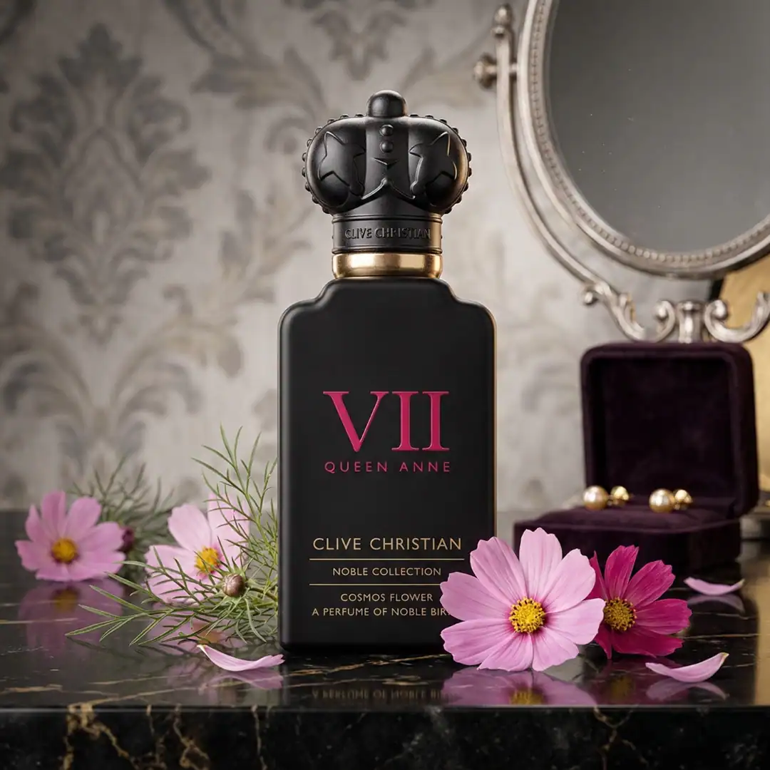 Experience the opulent allure of Clive Christian Noble Collection VII Queen Anne Cosmos Flower—a fragrance that envelops you in a harmonious blend of rich florals, luscious fruits, and decadent gourmand notes, perfect for those seeking a scent that is both distinctive and timeless.