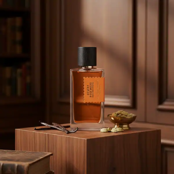 The opening is crisp and bright through Sicilian Mandarin, offering a fresh, solar quality that gradually gives way to warmer tones. According to the brand, the journey begins with “a heady rush of resinous Australian Desert Rosewood… sweetness of mandarin and vanilla”. As the citrus brightness subsides, cardamom from India and benzoin from Laos introduce aromatic spice and resinous warmth. The cardamom brings subtle green-spicy clarity, while benzoin adds a creamy, balsamic sweetness. Fragrantica describes the scent as “well-composed … sweet, woody, and peppery”. At the foundation lies the richly textured Australian Desert Rosewood (a palisander rosewood type), paired with creamy vanilla and dark Indonesian patchouli. These components contribute a deep woody-resinous character with gourmand touches and a mild leathery edge. According to a reviewer: “fresh, spicy, woody … robust and classy”. The fragrance family of Oriental Woody is fully represented here, combining woody structure with amber/resinous sweetness and a hint of gourmand vanilla. Seasonal suitability leans toward cooler weather (autumn/winter) given the richness of woods and resins, though it can function all year for those seeking warmth and depth.