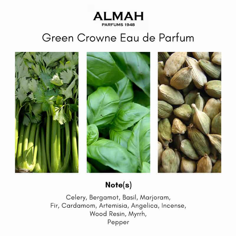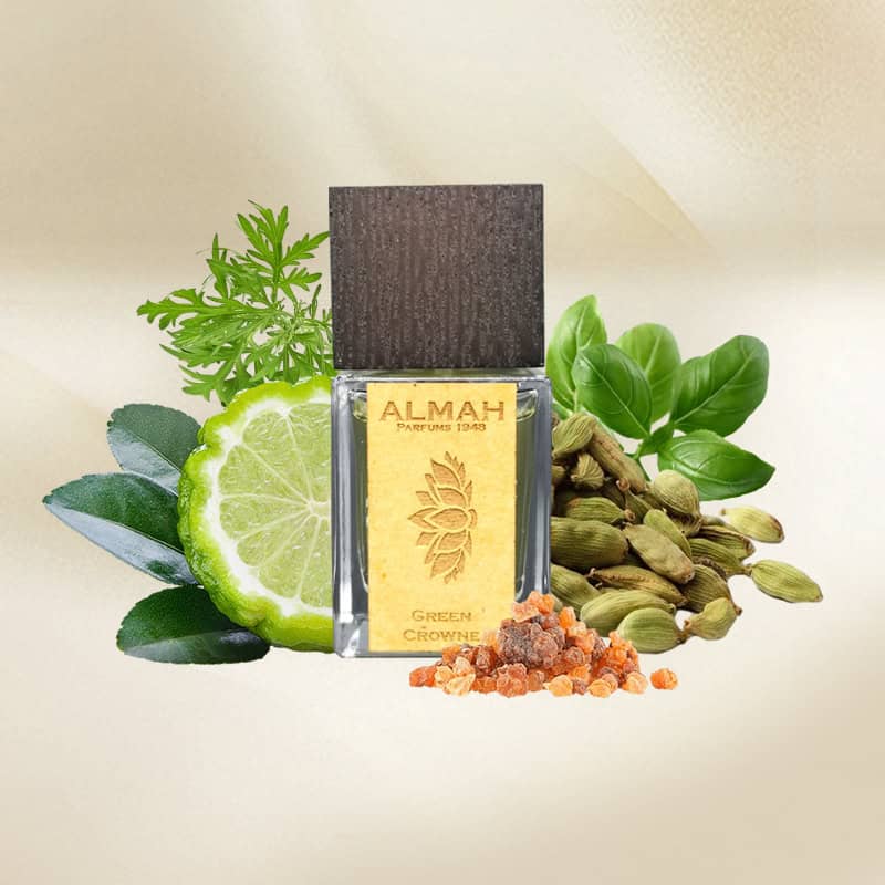 Experience the refined elegance of Almah Parfums 1948 Green Crowne—a fragrance that seamlessly blends green freshness with aromatic depth, creating a captivating and enduring scent.