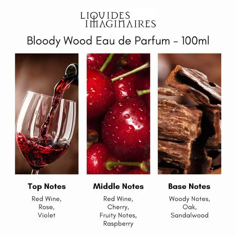 Liquides Imaginaires Bloody Wood Eau de Parfum is a unisex fragrance that artfully combines fruity, floral, and woody notes, drawing inspiration from the rich history and mythology of wine. This scent embodies the passion and complexity associated with fine wine, offering a unique olfactory experience.