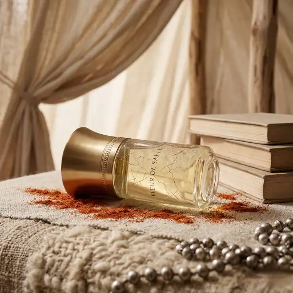 Fleur de Sable opens with a refreshing blend of bergamot and pink pepper, complemented by aquatic nuances of water and salt, evoking a breeze over desert sands. The heart introduces the delicate aroma of eglantine (wild rose), intertwined with the spicy warmth of paprika and the subtle sweetness of everlasting flower, adding depth and complexity. As the fragrance settles, base notes of black pepper and myrrh provide a resinous, slightly smoky undertone, while orris and ambroxan contribute a soft, powdery finish. This composition captures the contrast of delicate petals thriving in a harsh desert landscape, embodying resilience and beauty.