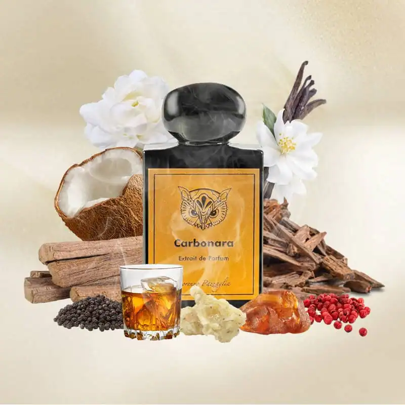 Lorenzo Pazzaglia Carbonara is an Extrait de Parfum unisex fragrance launched in 2020. It channels a gourmand-spicy concept inspired by chef Lorenzo Pazzaglia’s signature dish, balancing bold spices, creamy sweetness, and exotic woods.
