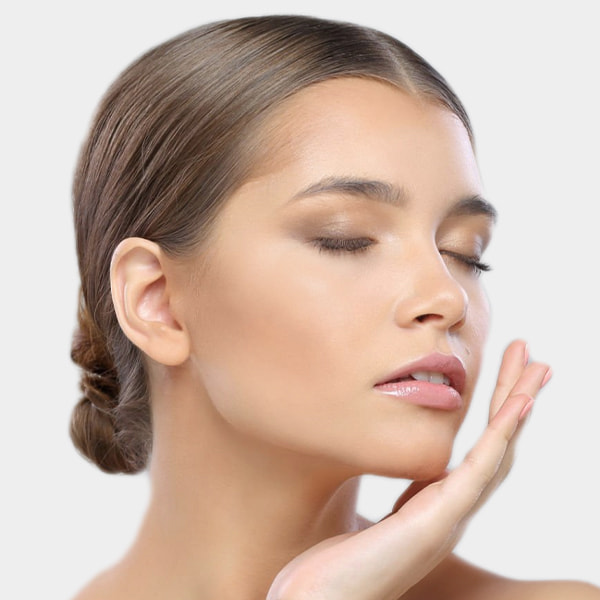 Luxurious woman with floral crown, high-end skincare, and elegant makeup.