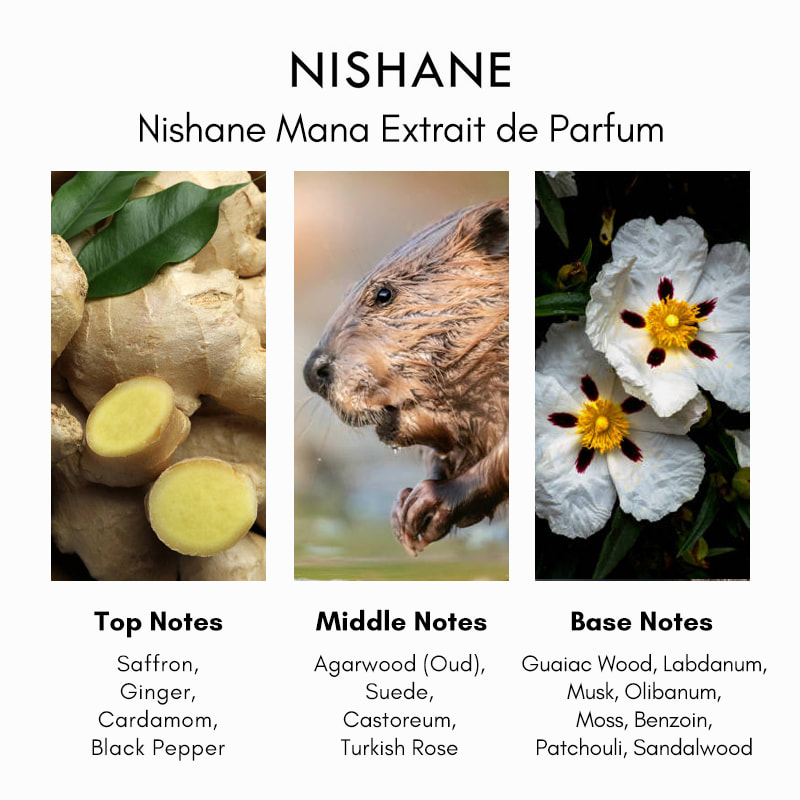 Mana is a complex, multi-layered “Oriental Leathery” fragrance that uses some of the most precious raw materials in modern perfumery to create a dense, textured olfactory experience.