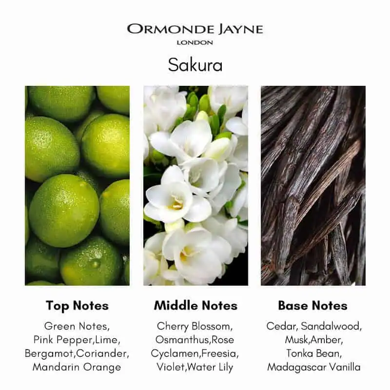 Ormonde Jayne Sakura Eau de Parfum offers a chic and understated interpretation of cherry-blossom inspired florals—with fresh citrus and green accents plus a gentle woody-vanilla base—making it ideal for the wearer seeking a daily luxury scent that remains elegant, light-hearted and distinctive.