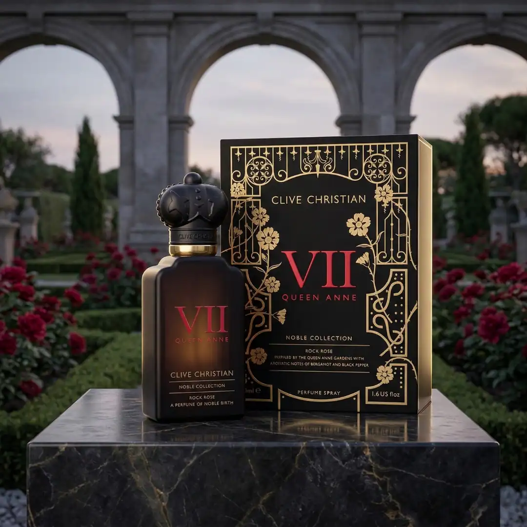 Clive Christian’s Queen Anne Rock Rose Eau de Parfum is a distinguished fragrance that masterfully blends vibrant citrus, aromatic herbs, and warm, resinous notes, creating a scent that exudes both freshness and depth.