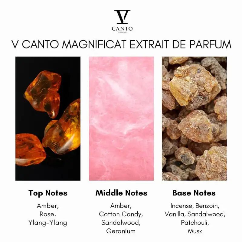 V Canto Magnificat Extrait de Parfum is a warm, unisex woody‑amber fragrance crafted by Paolo Terenzi and launched in 2015, striking a refined balance between rich sweetness and floral elegance—ideal as a signature scent for cool seasons and special occasions.