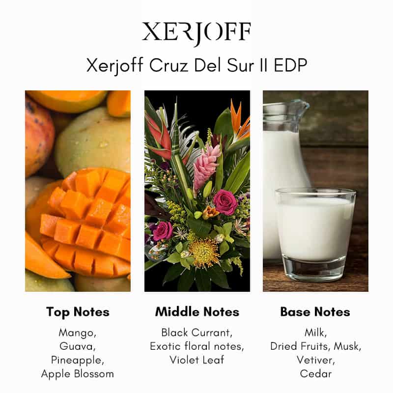 Experience the tropical allure of Xerjoff Cruz Del Sur II Parfum—a fragrance that masterfully combines luscious fruits, delicate florals, and creamy undertones to create a scent that is both captivating and enduring.