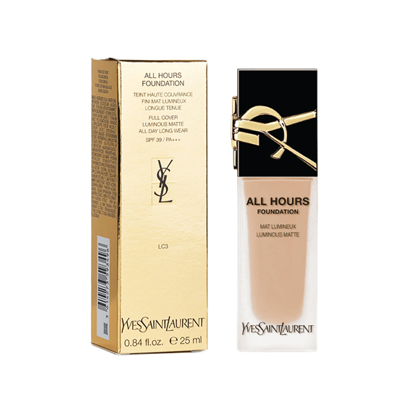 Designed for those seeking a long-lasting, full-coverage foundation with a comfortable matte finish, Yves Saint Laurent’s All Hours Foundation combines skincare benefits with enduring performance.